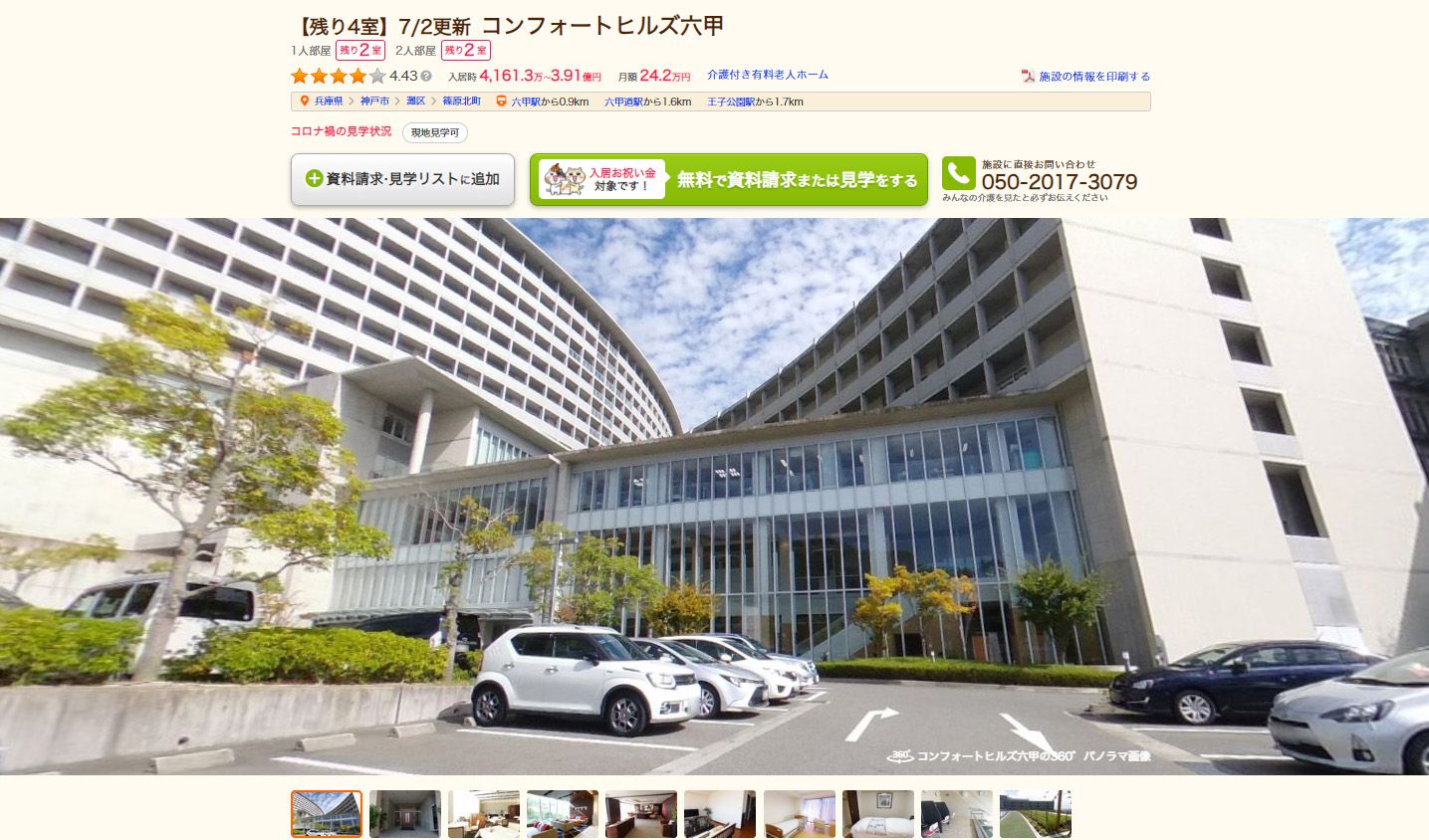 堂々の一位は兵庫県神戸市にある介護付き有料老人ホーム「コンフォートヒルズ六甲」の3.91億円でした。