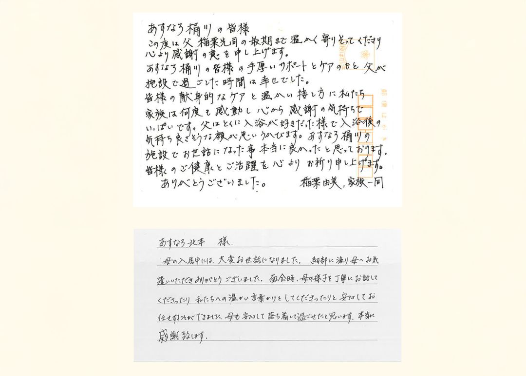食事の準備や片付け、共有スペースの清掃・管理まできめ細やかにサポート。ご入居者様が最期まで自分らしく過ごせる「終の住まい」として、