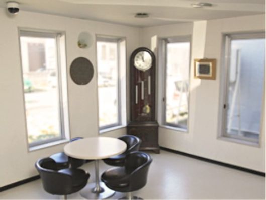 防犯カメラを設置したエントランスには、テーブルセットもご用意。おしゃべりや休憩にお使い下さい。