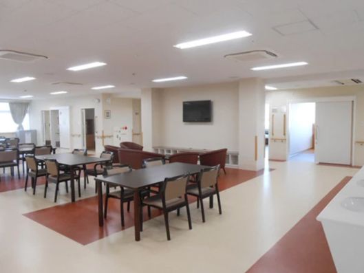 1階部分にはデイサービス、2階部分にはナチュラルカラーをベースとしたインテリアを置き、3階部分には専用ラウンジや屋上庭園もご用意!医療機関との連携もあり、安心して暮らしていただける環境です。