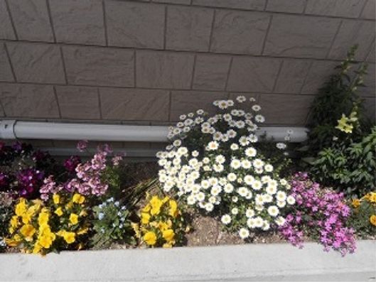 植物のお世話にもご協力いただいています。色とりどりの花が咲くと、ご利用者様のお顔も笑顔になり、皆様の交流も盛んになります。