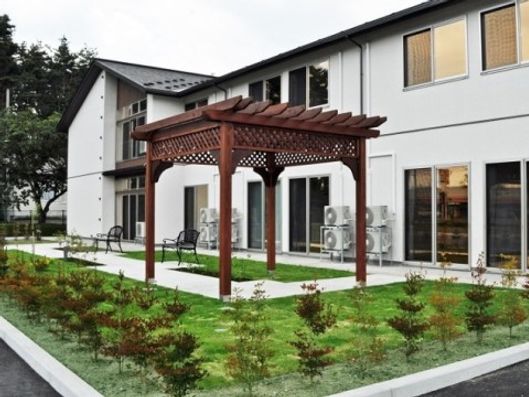 2階建て全31室の居住系サービスです。 すべてのお部屋に洗面トイレが完備されております。 24時間換気システム、お部屋の壁には珪藻土の塗壁をあしらっておりますので、嫌な臭いがせず空気が綺麗なことが自慢です。 フィットネスマシーンやベッド型マッサージ機、書籍が共有スペースに設置してあります。 おひとり様はもちろん、ご夫婦での入居も可能です。