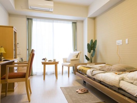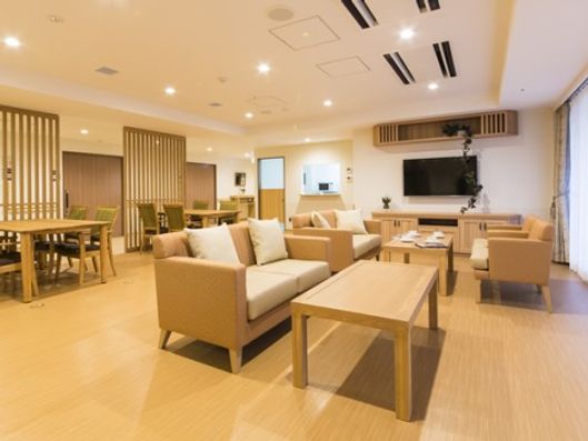 明るい雰囲気のリビングや広い庭が付いたホームは全室個室!準天然光明石温泉を使用したお風呂も自慢の一つです。学童が併設され、普段から子供たちとの交流があり、楽しく穏やかな日々をお過ごしいただけるでしょう。