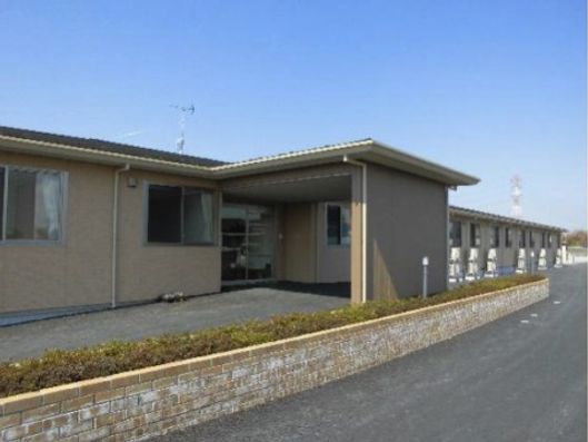 のどかな風景に囲まれた落ち着きある平屋づくりの建物が特長の『ソレイユ輝輝』は、デイサービスを併設した安心・快適な住まいです。