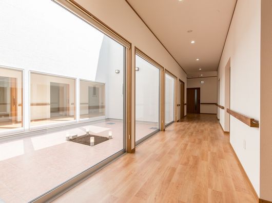 平屋建てでお体に負担がかからないオールバリアフリーの環境をご用意いたしました。生活負担を軽減してご自分らしい暮らしをお過ごしいただけます。自然豊かな周辺環境が心豊かな時間を運んでくれる施設です。