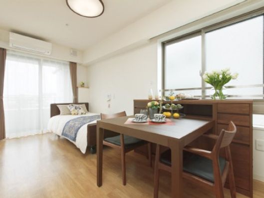 清潔でデザイン性の高いお住まい、24時間のサポートが魅力です。居室内には全室キッチンや洗面室を設けており、いつも通りの生活ペースでシニアライフを楽しめます。