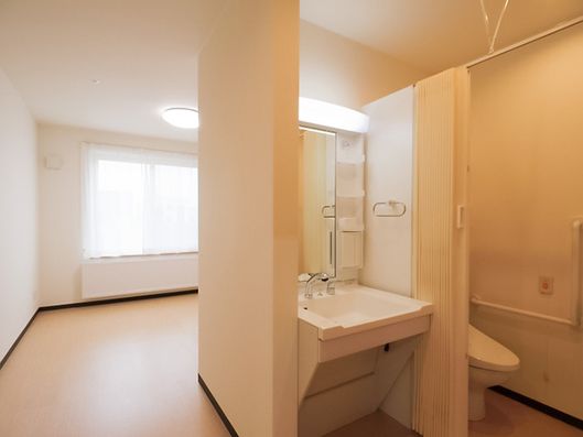 訪問介護ステーションを併設し、地域の医療機関とも連携!ご希望に沿ってデイサービスや訪問診療などもご利用いただけます。介護対応の広いお部屋で、自由かつ自立したお一人またはお二人暮らしをお楽しみください。
