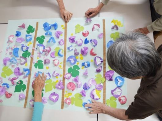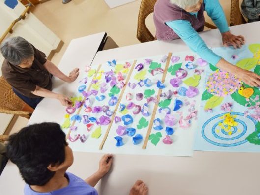 認知症症状緩和のためのリハビリ活動や、生活のサポート、医療のバックアップ体制を整えました。生きがいづくりや趣味活動のサポートも行っており、心豊かな毎日をお過ごしいただけます。