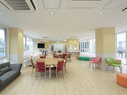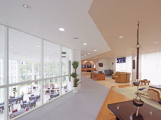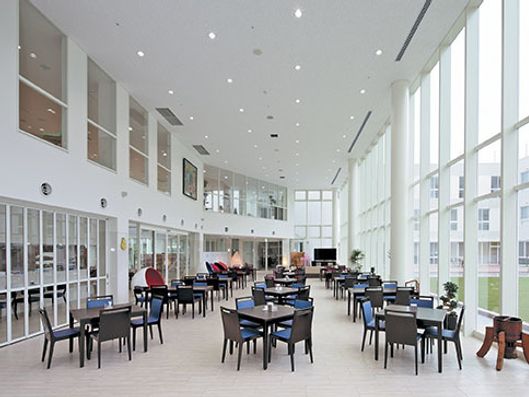 広大な敷地に恵まれた環境を整備し、いつも充実した毎日を送れるように環境を整えました。救急病院の近くにあるため、医療依存度が高い方にも安心してお住まいいただけます。