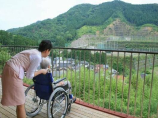 目の前に広がる山々はまさに「悠久の丘」。緑豊かな自然に囲まれて、のんびりと自分のペースを崩すことなくお暮しください。介護・看護体制を整えて、ご利用者様を支えています。