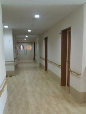 「いちょう家族Ⅰ」の廊下。車いすをご利用の方の往来もスムーズな、広くゆとりのある廊下。
