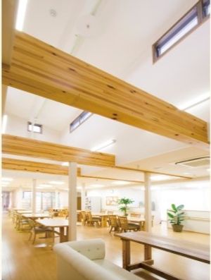 平屋建てで生活空間がワンフロアにまとまっています。24時間365日スタッフ常駐と、段差のないバリアフリー設計で、安心・安全の生活をお送りいただけます。