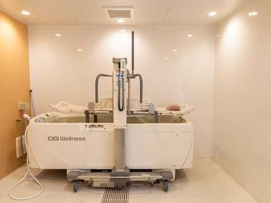 介護度の高い方も気持ちよくお湯に浸かる時間を楽しんでいただけるよう、寝台浴を導入しております。