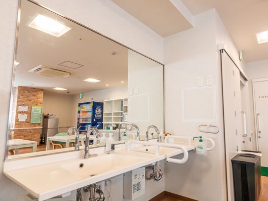 手すり付きのトイレと洗面台が整っており、安全かつ快適にご利用いただける空間です。