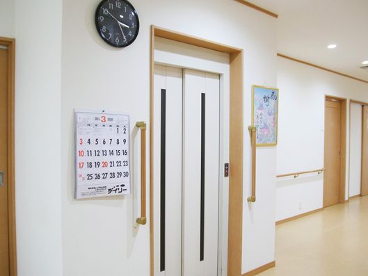 ゆったりとした廊下は明るく、手すりが整備されており、安心して歩行できる設計です。