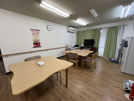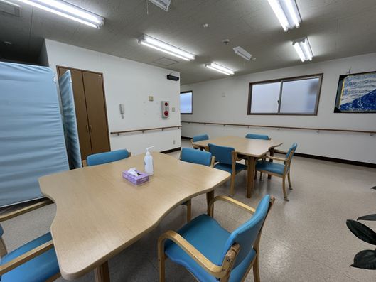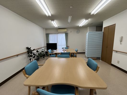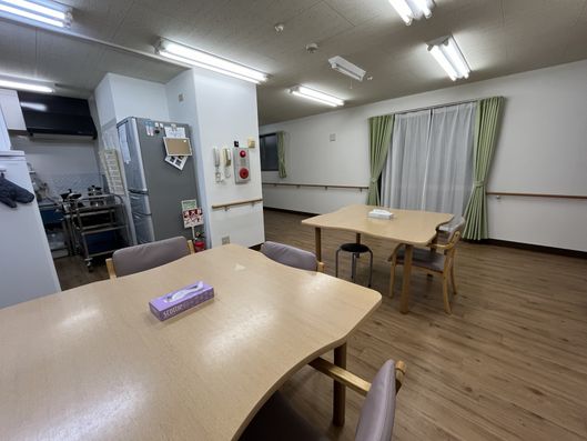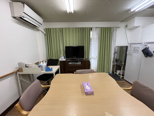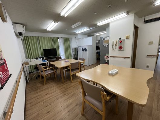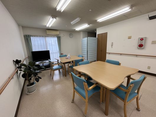 ゆったりとした共有スペースでは、テレビを見たり、食事を楽しんだりすることができます。明るく清潔感のある環境で、日々の生活が快適に過ごせます。