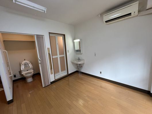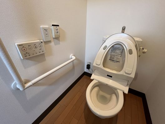 手すり付きトイレが設置された居室です。ゆったりとした空間で、快適な日々をお過ごしいただけます。