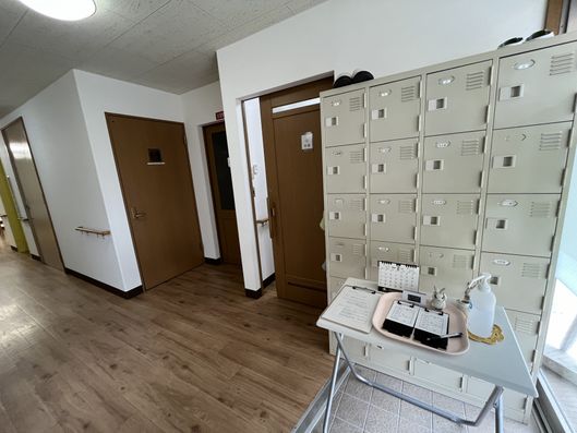 整理されたロッカーが並ぶ廊下は、清潔感があり、日々の生活に安心を与えます。