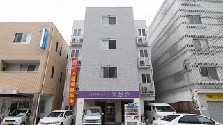 施設の周囲には似たようなビルが建っています。ビルにはわかりやすいように入居者様募集の垂れ幕を掛けて皆様をお迎えしています。