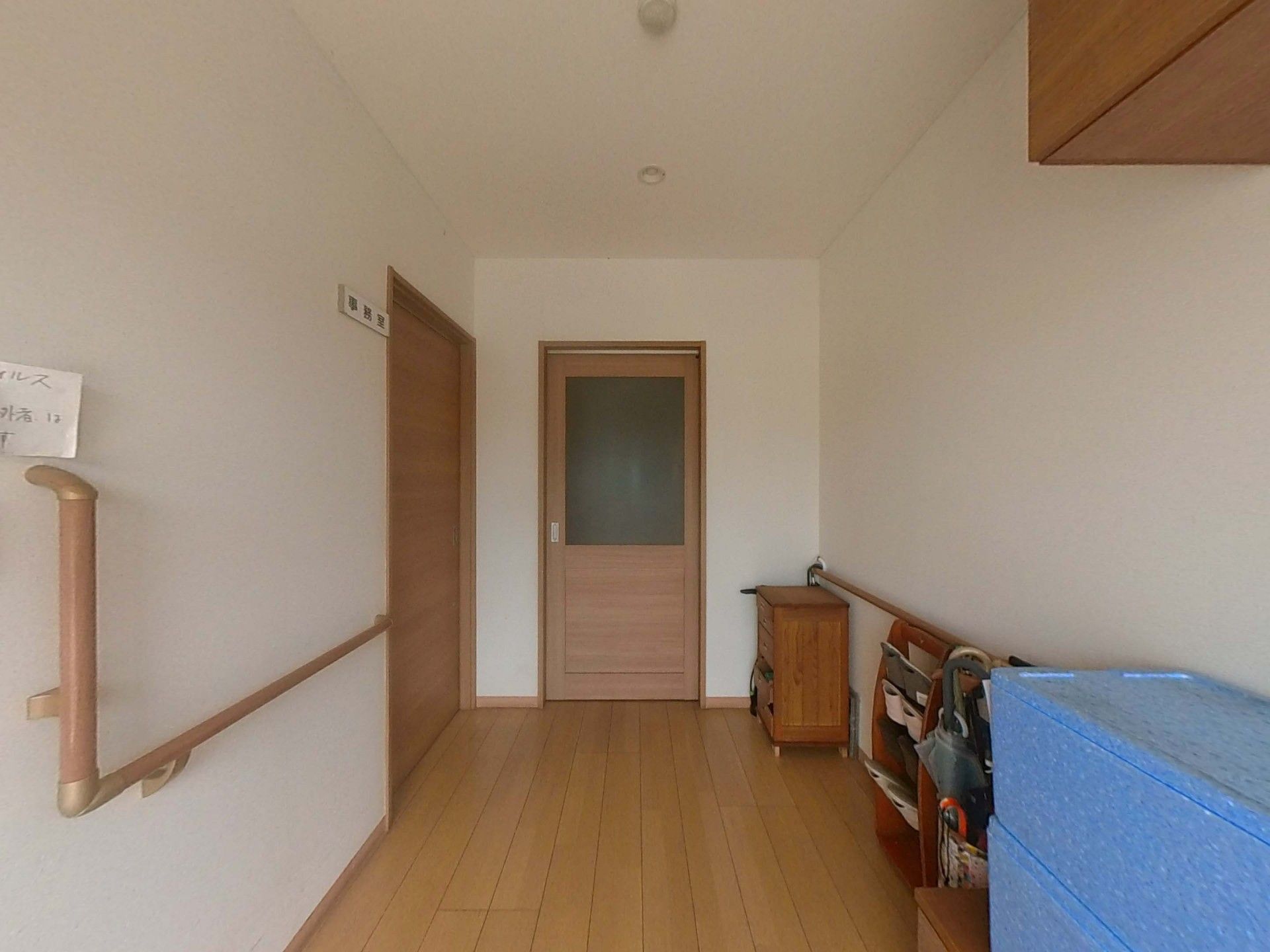 手すりが設置された廊下は、移動の際に安心感を提供します。収納スペースも充実しています。