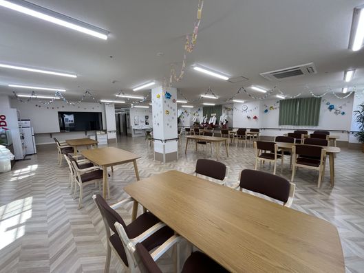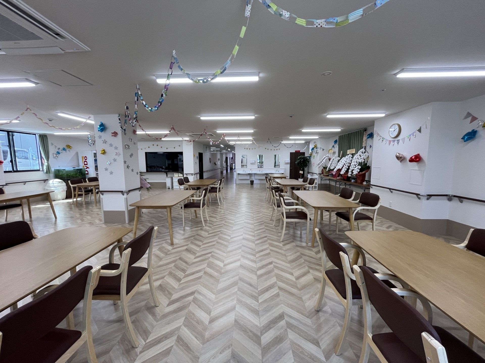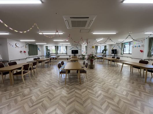 • ダイニングルーム 広々とした空間で、皆さんが集まりやすい配置になっています。食事や交流の場として最適です。