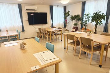 共用スペースの食堂は広々とした快適な空間となっています。浴室には最新の機械浴槽を完備しており、身体状況に合わせた入浴ケアを実施しています。日々のお食事は栄養面に配慮し、ご入居者様の咀嚼力や嚥下能力に合わせて、刻み食やペースト食などの調理法も対応可能です。施設内では定期的にレクリエーションやイベントを開催し、ご入居者様同士の交流を促進しています。寿々グループならではの行事を通じて、季節を感じながら楽しい日常生活を送れる環境づくりに努めています。