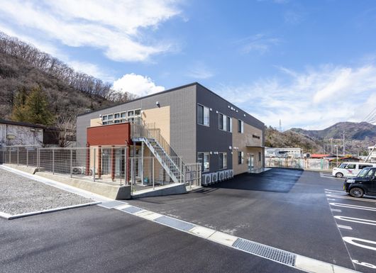 広々とした駐車場があるモダンな建物です。明るく開放的な雰囲気で、訪れる方を温かく迎えます。