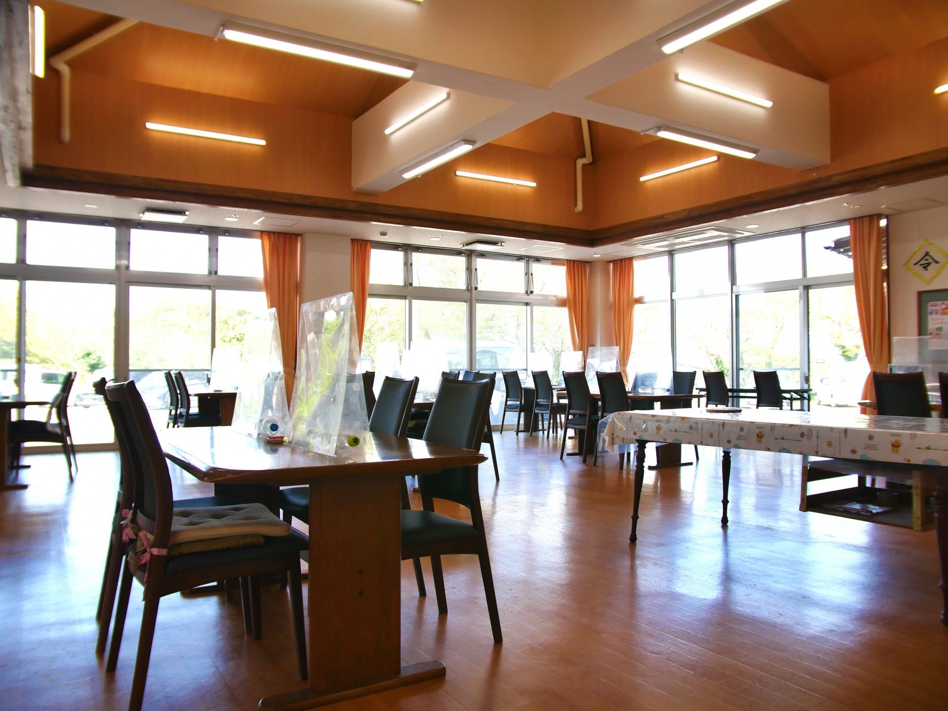 ゆったりとした空間の多目的室です。テーブルと椅子が配置され、様々な活動や交流が行える場所となっています。