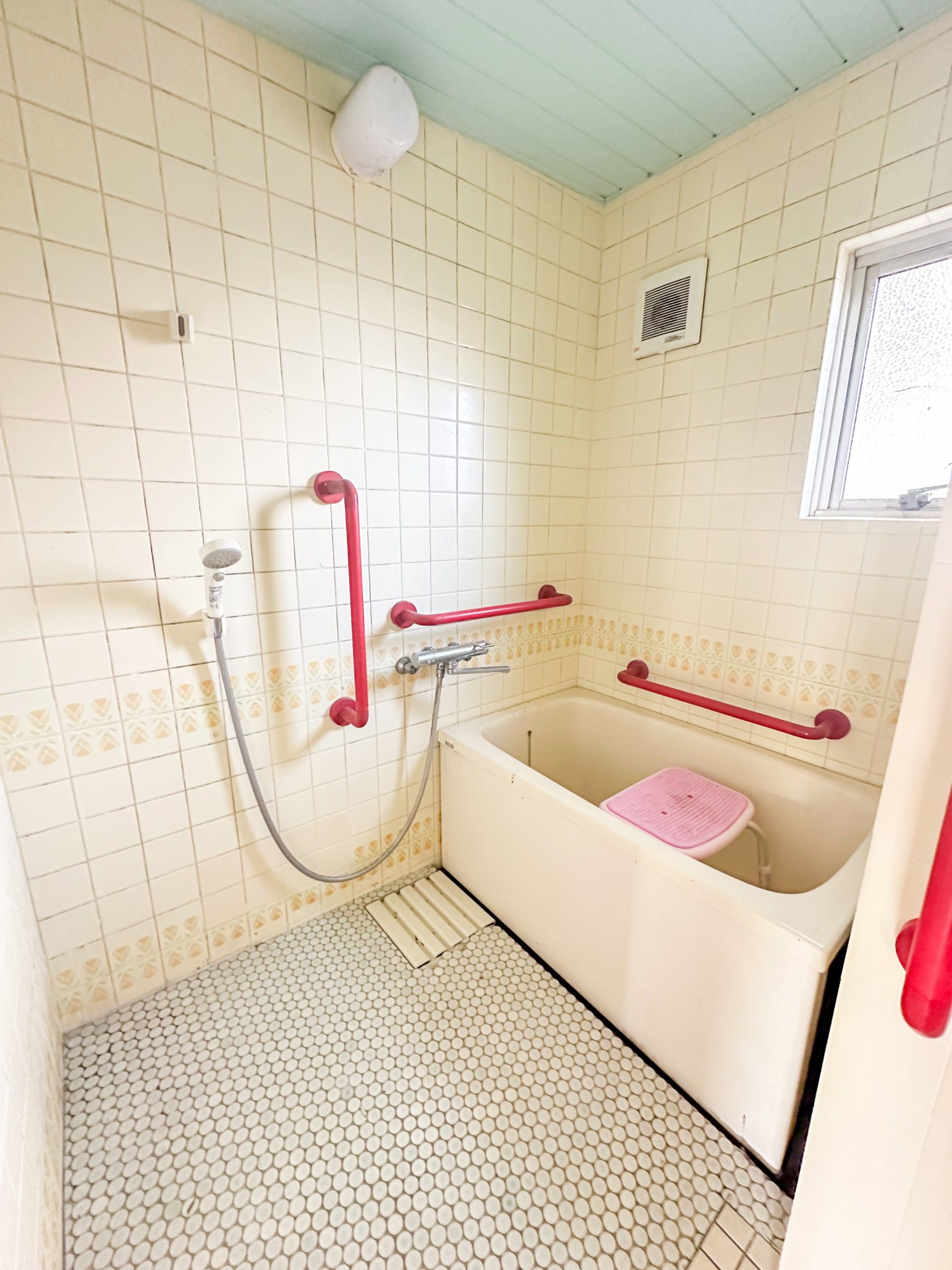 手すりがしっかりと設置されており、安心して入浴を楽しむことができます。