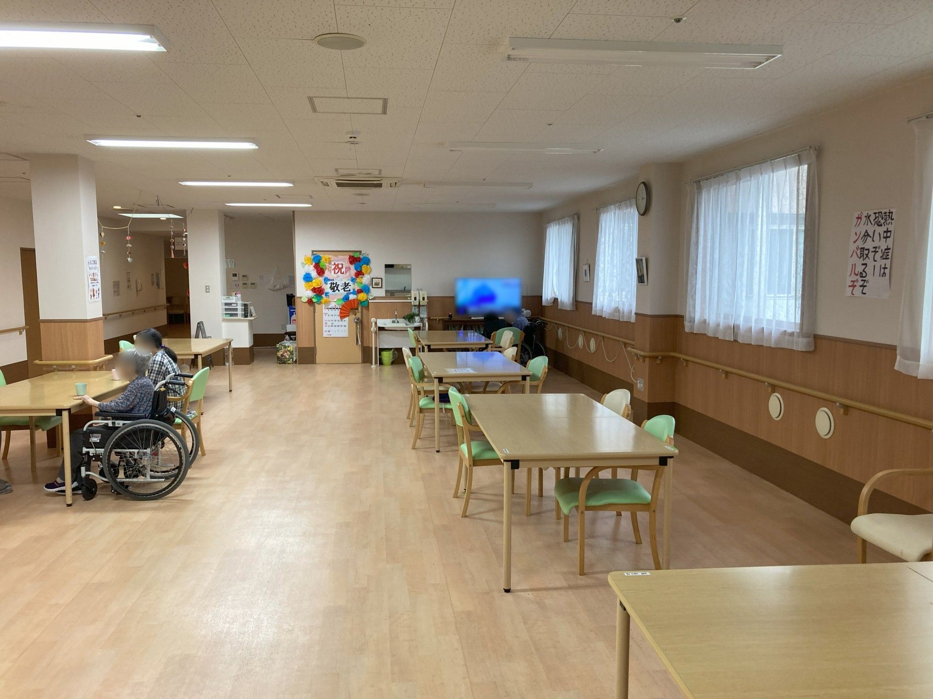 ゆったりとした共有スペースでは、テレビやおしゃべりを楽しむことができ、明るく開放的な雰囲気が広がっています。