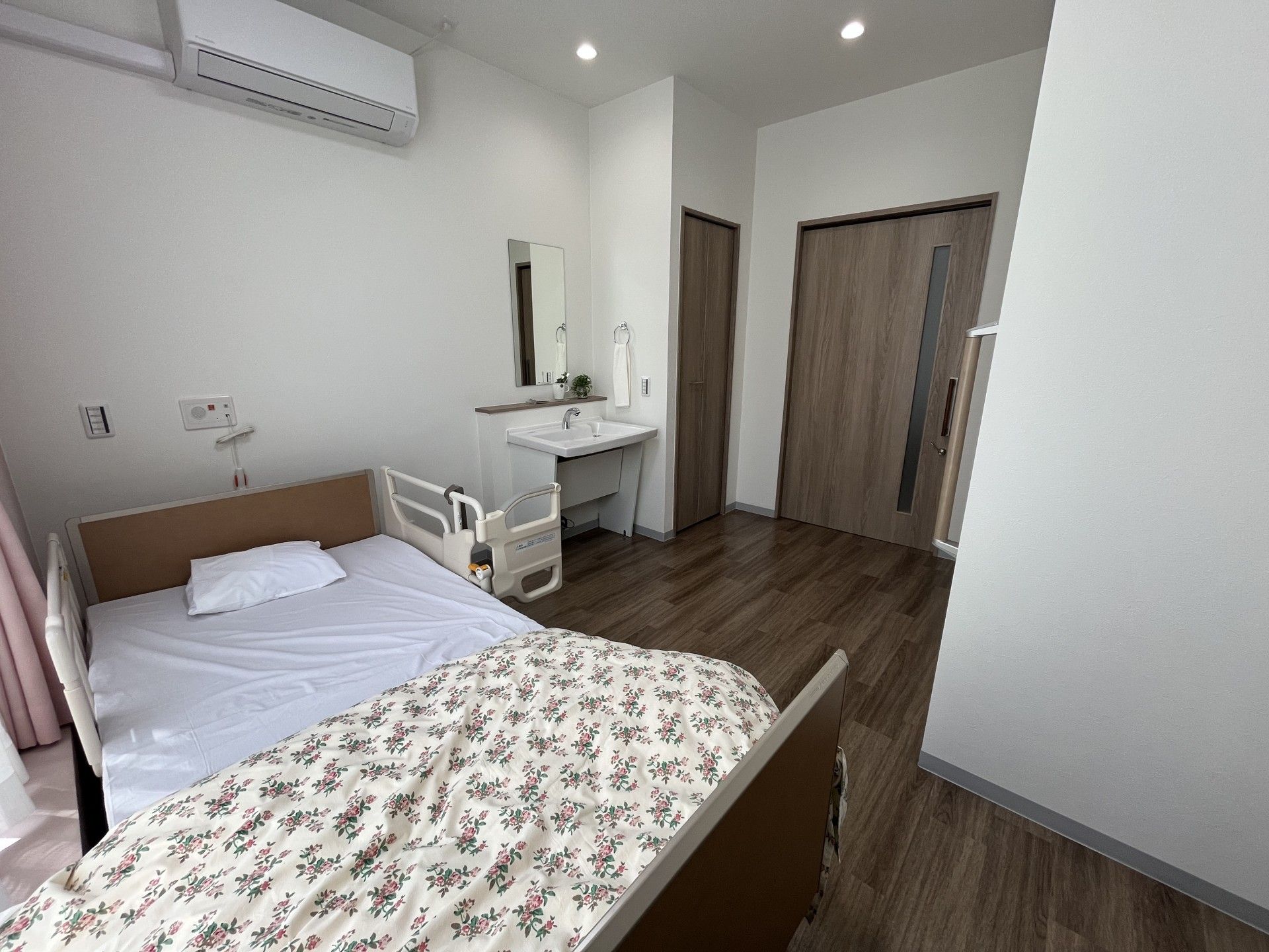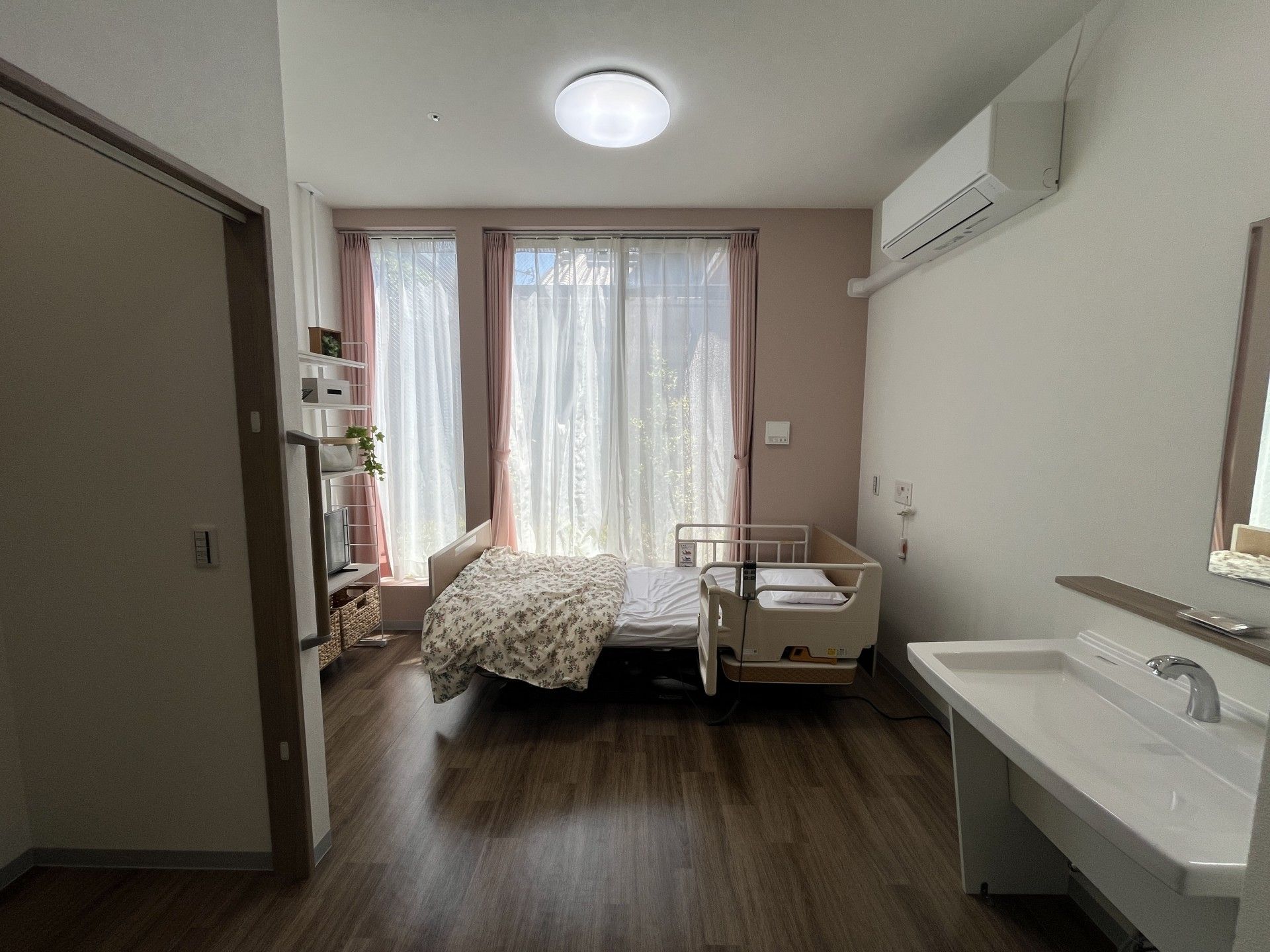 当施設では、要介護1から5までの方を対象に、安心してお過ごしいただける住環境をご用意しています。各居室は18㎡以上の広さを確保し、プライバシーを尊重した設計となっています。全室に介護用ベッド、クローゼット、洗面台、緊急呼び出しボタンを標準装備し、ご入居者様の安全と快適さを追求しました。室内は車椅子でも移動しやすい広さを確保し、手すりの設置など転倒防止にも配慮しています。また、お持ち込みいただける家具や思い出の品で、ご自分らしいお部屋づくりも可能です。