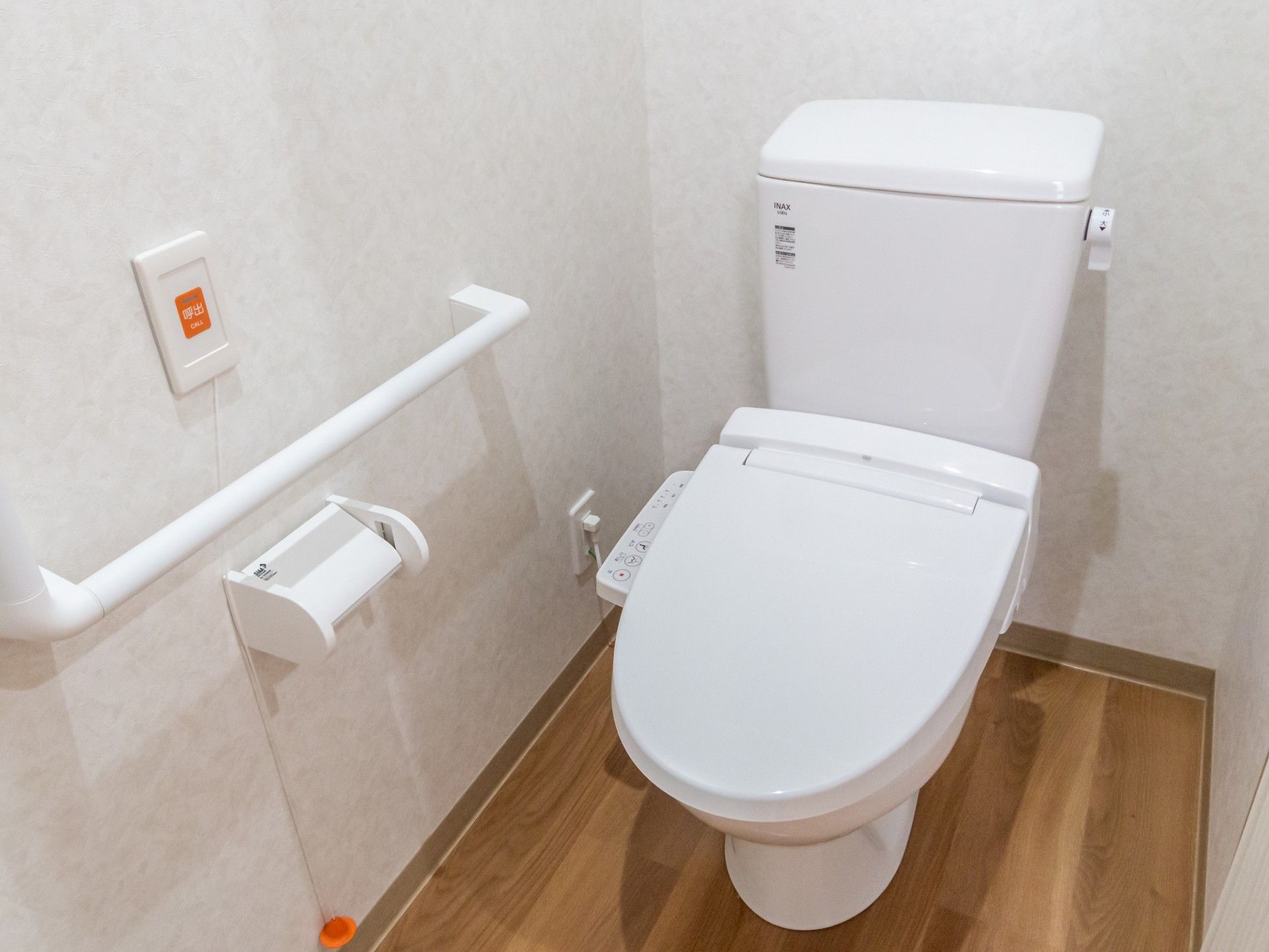 手すりが設置されているので、安心してご利用いただけます。緊急ボタンも備えています。