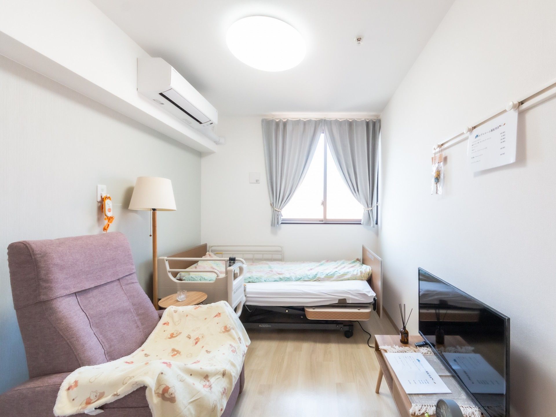 サンケアレーベン堺では、全24室の個室にエアコン・トイレ・洗面台・ナースコール・照明を標準装備しています。13㎡のゆとりある空間で、プライバシーを守りながら自分のペースで生活していただけます。居室では自分だけの時間を大切にしながら、共用スペースでは他のご入居者様とほどよい距離感で過ごすことができます。要介護1~5の方、65歳以上の方が入居可能で、認知症の方や生活保護受給者の方もご相談いただける体制を整えています。