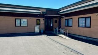 全体的に茶色が目印の外観。出入り口付近には車椅子の方に配慮して、スロープを設置しております。