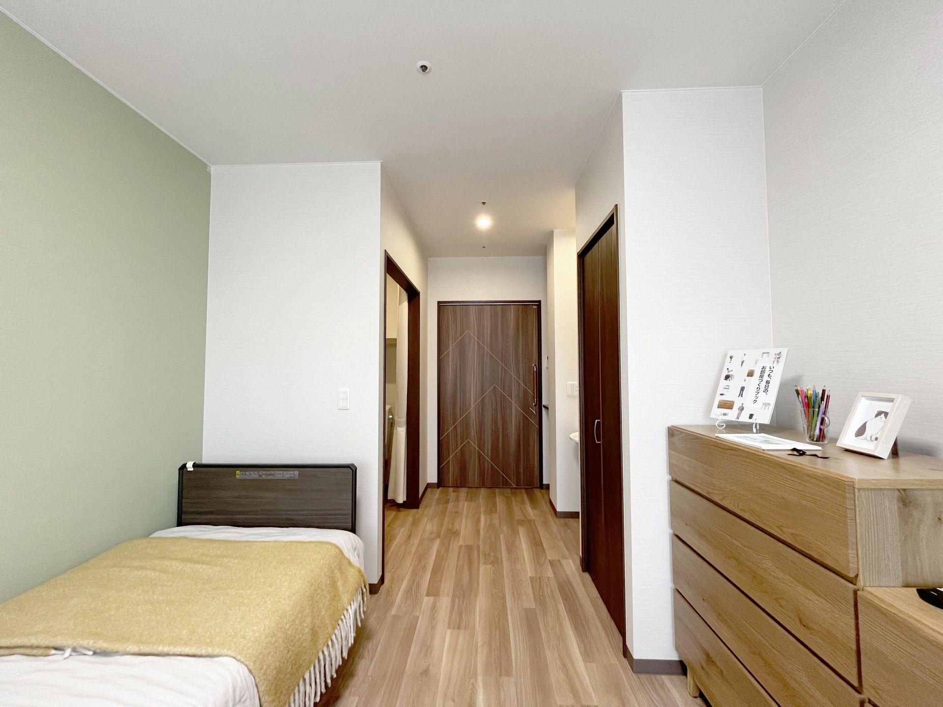 • 収納 大きめの収納スペースがあるため、収納家具を用意しなくても困りません。必要に応じて家具の持ち込みもで きますので、ご自宅のようにお過ごしいただくことも可能です。