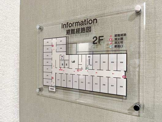 • 2階の避難経路図がしっかりと掲示されていますので、緊急時も安心して行動できます。