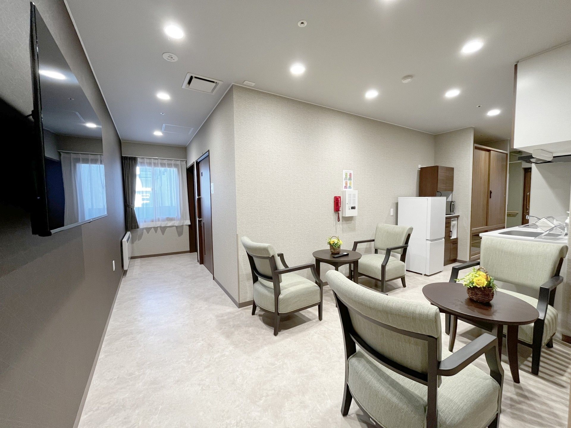 • 多目的室 理美容サービス(有料)も受けられる多目的室をご用意。車いすの方でもカットやカラー、パーマなど髪のお しゃれが楽しめます。身だしなみを整えることで、明るい気持ちになっていただけます。