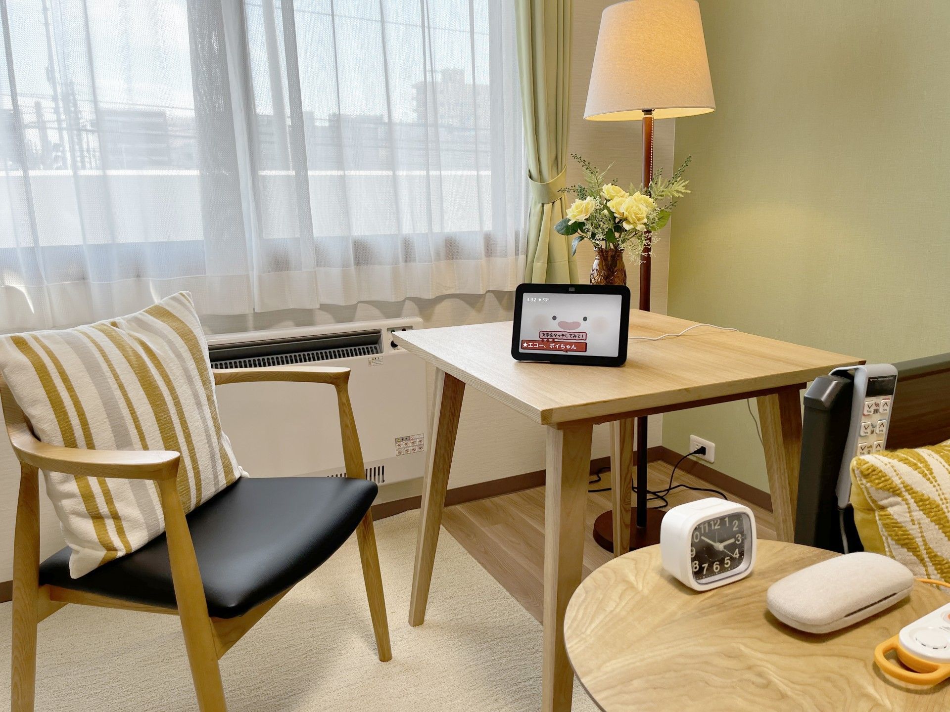 • ボイスタ 前居室に音声対話システム「ボイスタ!」を標準装備し、いつでもご家族とお顔を見ながら会話が可能。離 れていても安心してお過ごしいただけます。