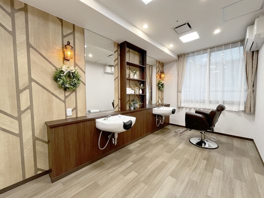 • 理美容室 大きな窓から自然光が差し込む美容室で、リラックスしながらお手入れを受けられます。