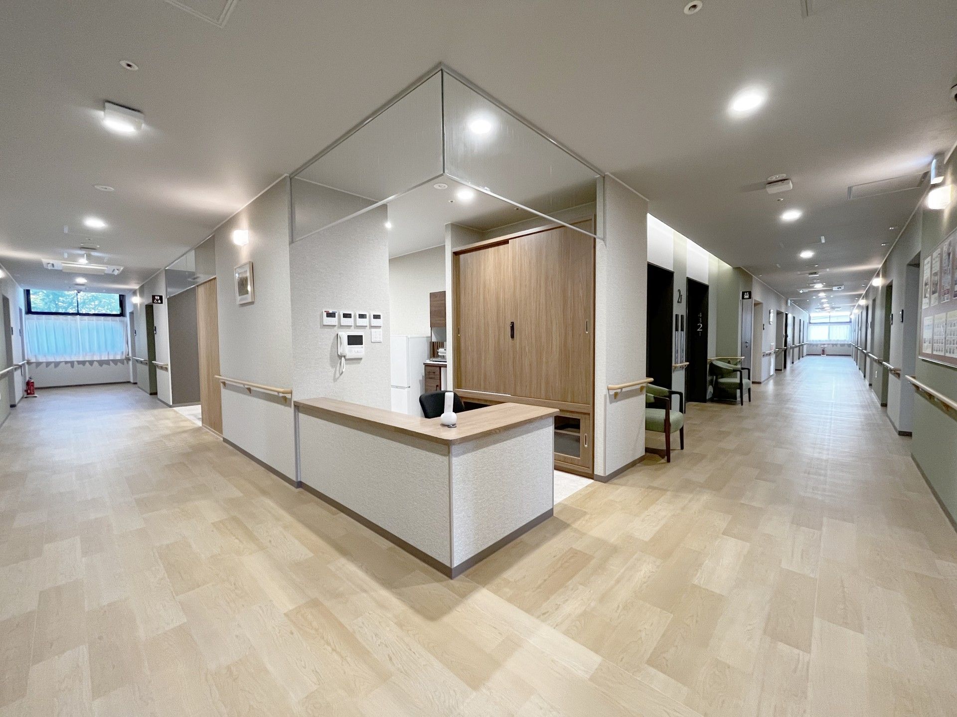 • ヘルパーステーション 各階にヘルパーステーションを設置。職員が待機していることが多く、気になる事などは気軽にご相談いただけ ます。