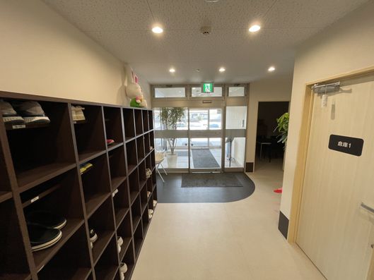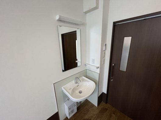 清潔感あふれるエントランスで、手洗いや消毒が行える設備が整っており、安心してお過ごしいただけます。