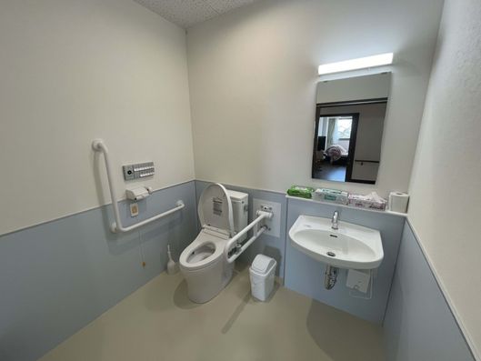 手すり付きで安全に配慮された清潔なトイレ空間です。日々の生活に安心をお届けします。