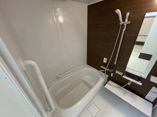 安全に配慮された浴室です。手すりや座浴椅子があり、安心してご利用いただけます。