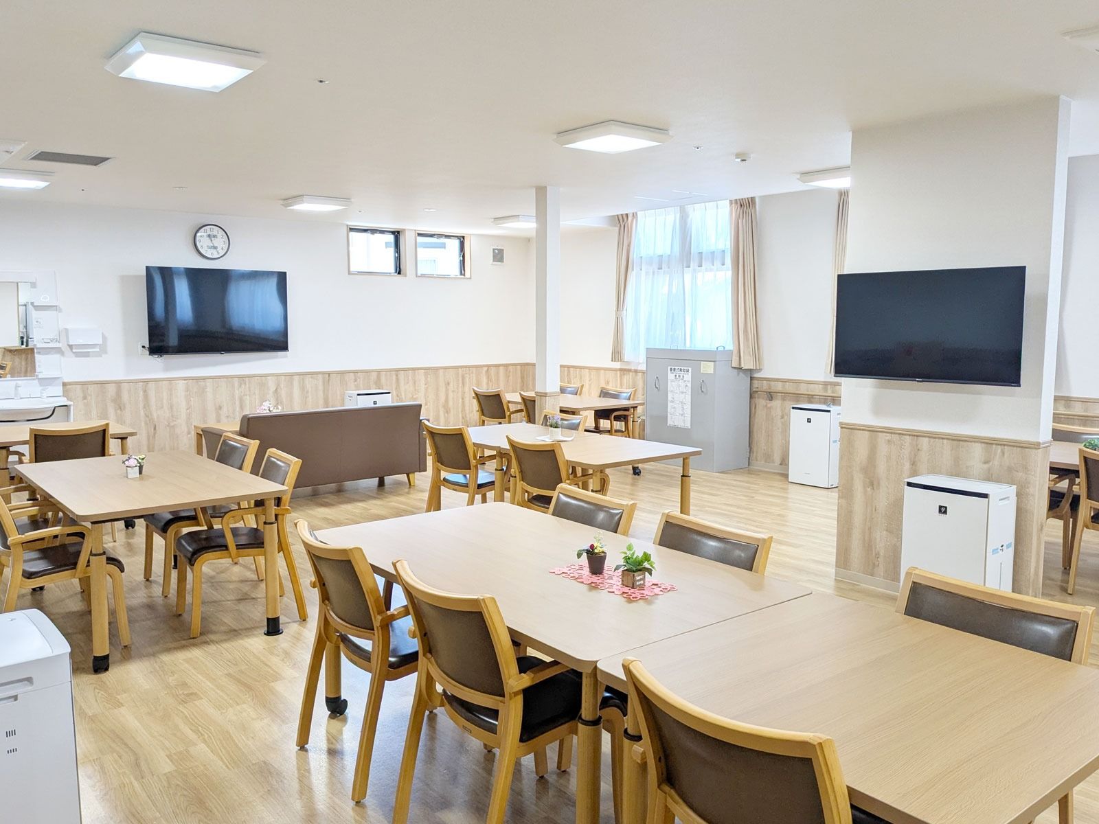 快適な個室での生活に加え、食堂では他のご入居者様との団欒を楽しむことができます。明るく開放感のある食堂は、コミュニケーションの場としても活用いただけます。入浴設備も充実しており、身体状況に合わせてリフト浴と個浴を選択することが可能です。特にリフト浴は身体に負担をかけずに安全に入浴いただける設備として好評です。清潔感のある廊下やエントランスも整備され、エレベーターも完備しているため施設内の移動もスムーズに行っていただけます。