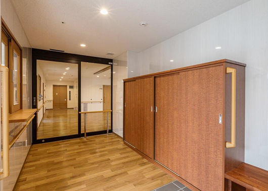 「安らかで落ち着いた空間にしたい」という思いをカタチにするため、内装はシックな色使いや木目の素材感を活かした設えで統一されています。共用スペースには食堂・居間をはじめ、厨房、機械浴室などの設備を完備し、ご入居者様の快適な生活をサポートいたします。各階に設けられた廊下や台所、居室などは使いやすさにこだわった設計となっています。エレベーターも完備しており、館内の移動もスムーズです。一つひとつの設備に至るまで、ご入居者様の快適性を追求した空間となっています。