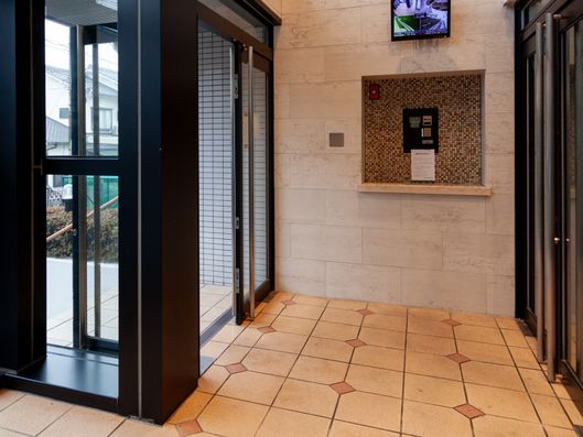 日当たりが良い、開放感あふれるエントランスです。安心してお過ごしいただける環境をご提供します。