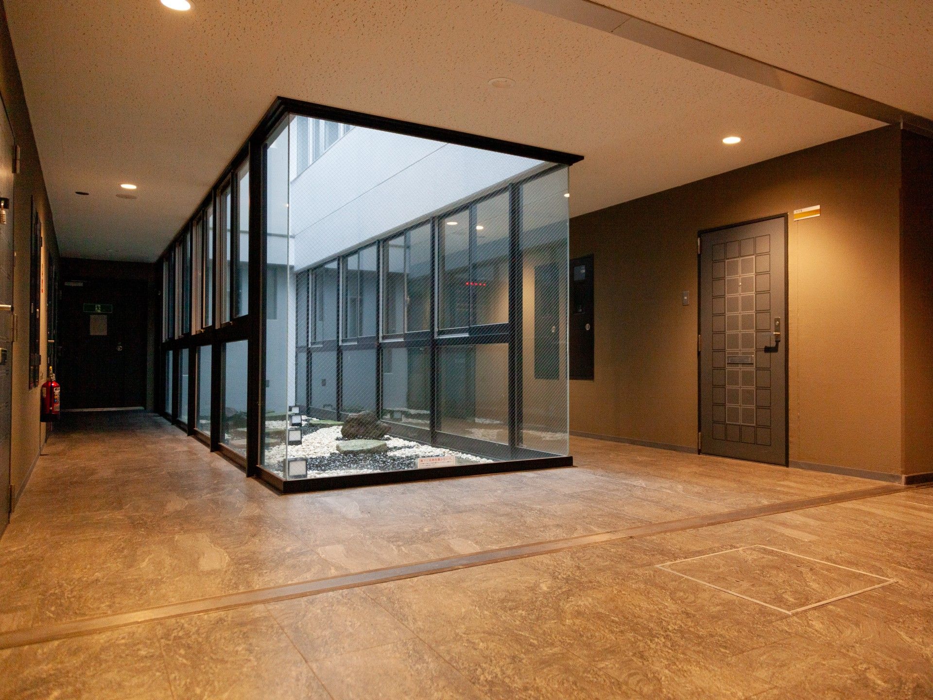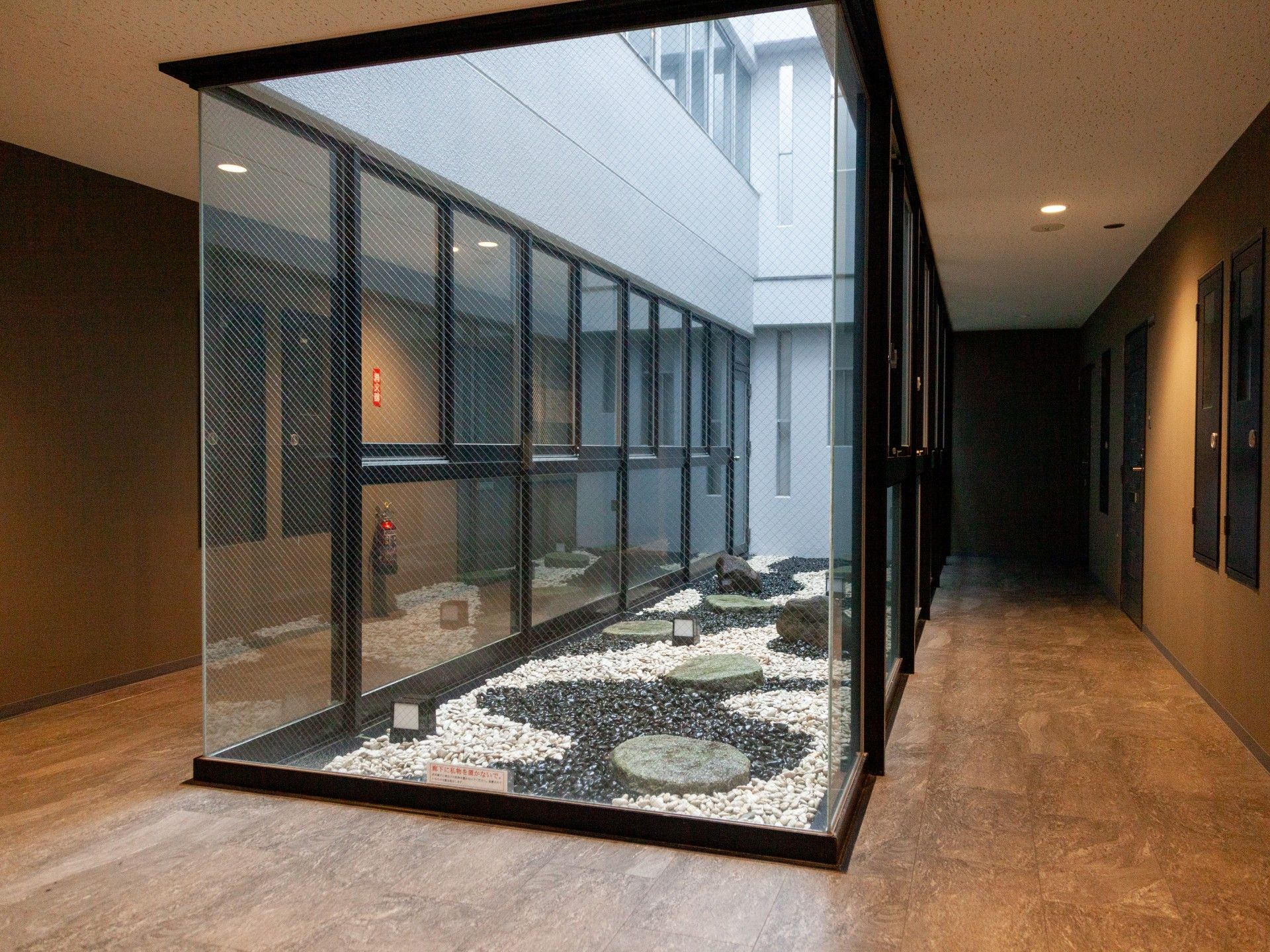 趣のある中庭が望める廊下には、心安らぐ時間を過ごせる落ち着いた雰囲気があります。