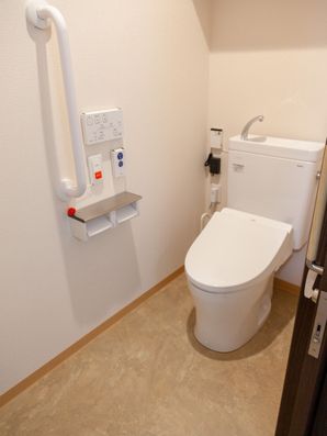 入居者様のお部屋は全て個室。全室にナースコールやトイレ、洗面台、クローゼットが完備されており、安心・安全な環境でおくつろぎいただけます。また、使い慣れた家具や愛用品を持ち込み、ご自宅に近い雰囲気で暮らすことも可能です。