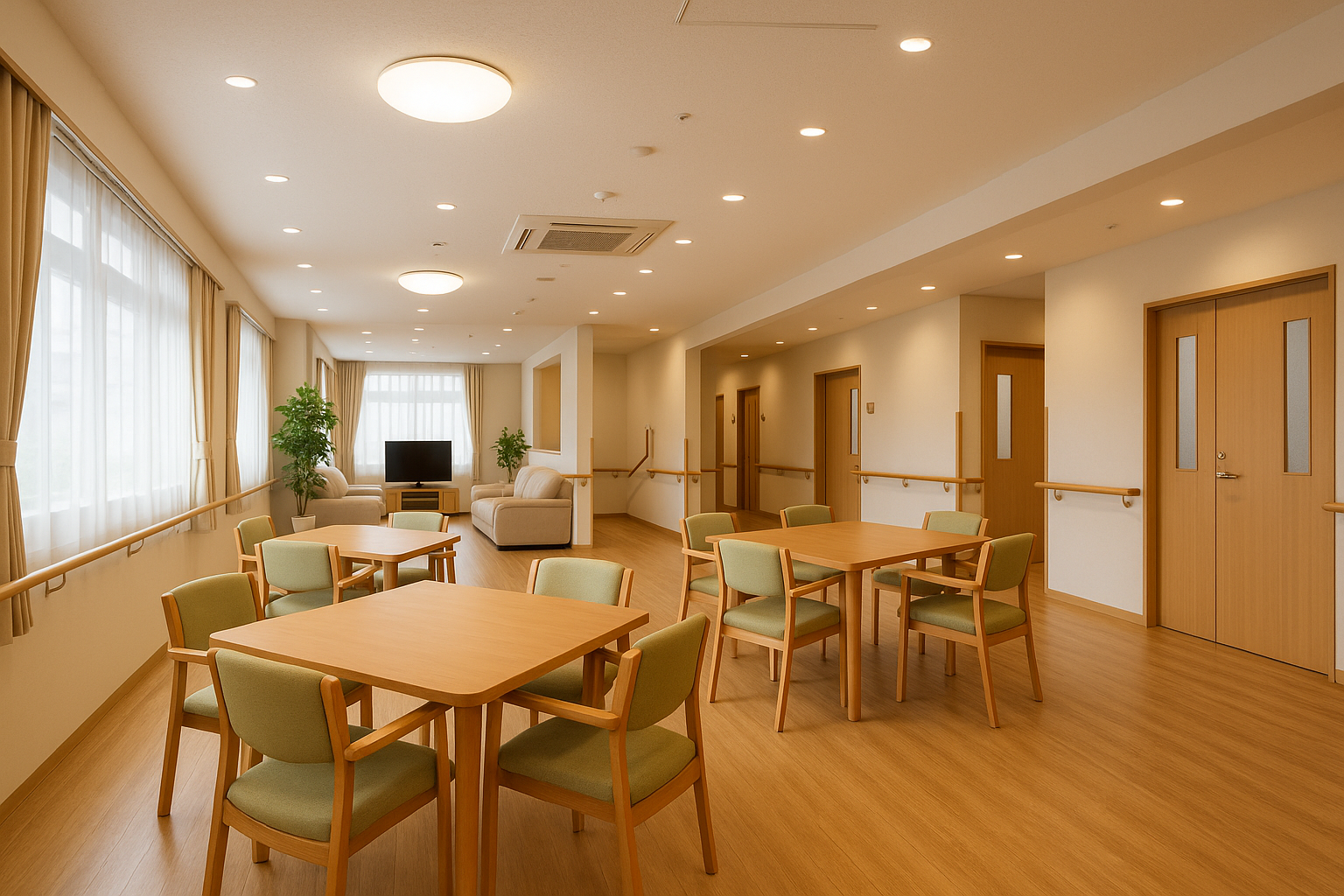 施設内の共用スペースは、ご入居者様同士の交流の場として活用されています。明るく広い空間に快適な共用空間を設け、日常的なコミュニケーションを促進しています。ご入居者様のクオリティ・オブ・ライフの向上を常に考え、季節に応じたさまざまな活動やイベントを企画しています。活動やイベントを通じて、生活に彩りを添える機会を提供しています。医療法人社団医凰会の理念である「心が通い合う」環境づくりを大切にし、ご入居者様が充実した日々を過ごせるようサポートいたします。