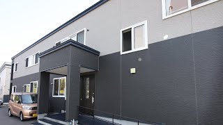 モノトーン調のグレーとブラックが特徴の外観。ご利用者様専用の駐車場を併設しております。